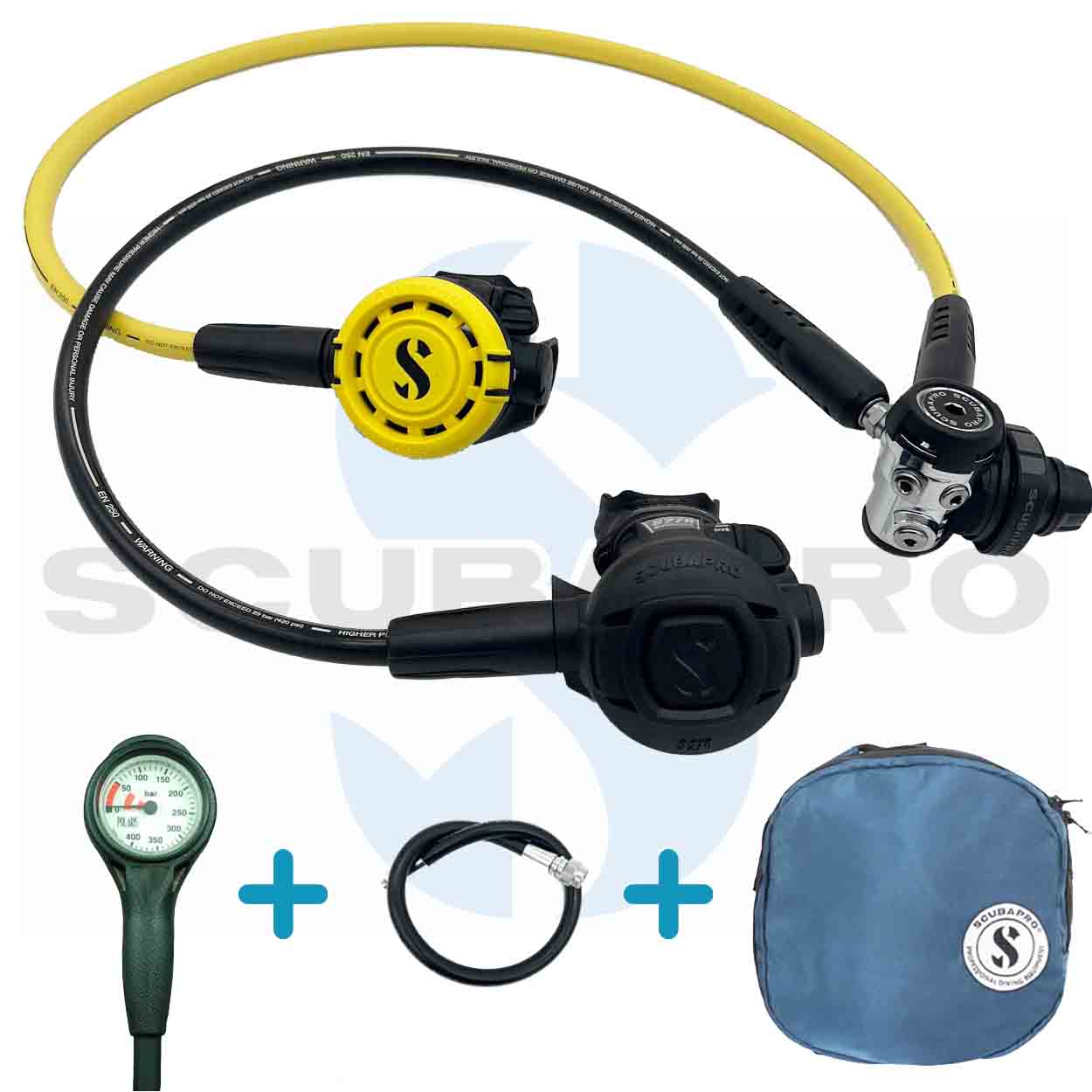 Im Lieferumfang enthalten sind nicht nur die MK11 EVO erste Stufe, die S270 zweite Stufe und der R105 Octopus, sondern auch zusätzliches Zubehör für eine vollständige Tauchausrüstung: