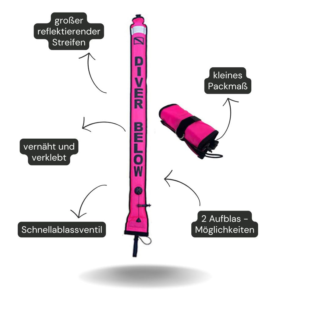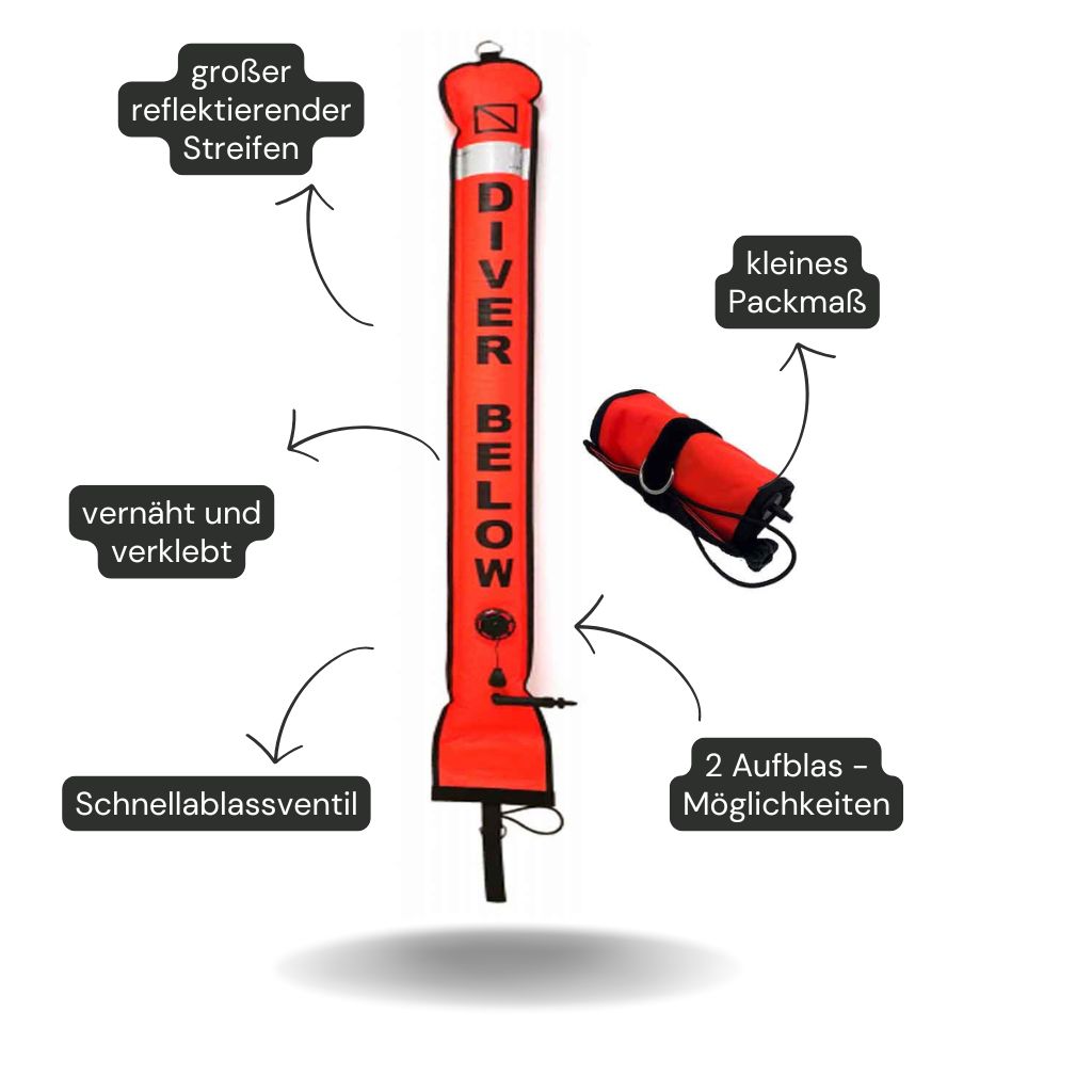 Geeignet für Gerätetaucher um Sichtbarkeit beim Aufstieg und Sicherheit an der Oberfläche zu erhöhen.