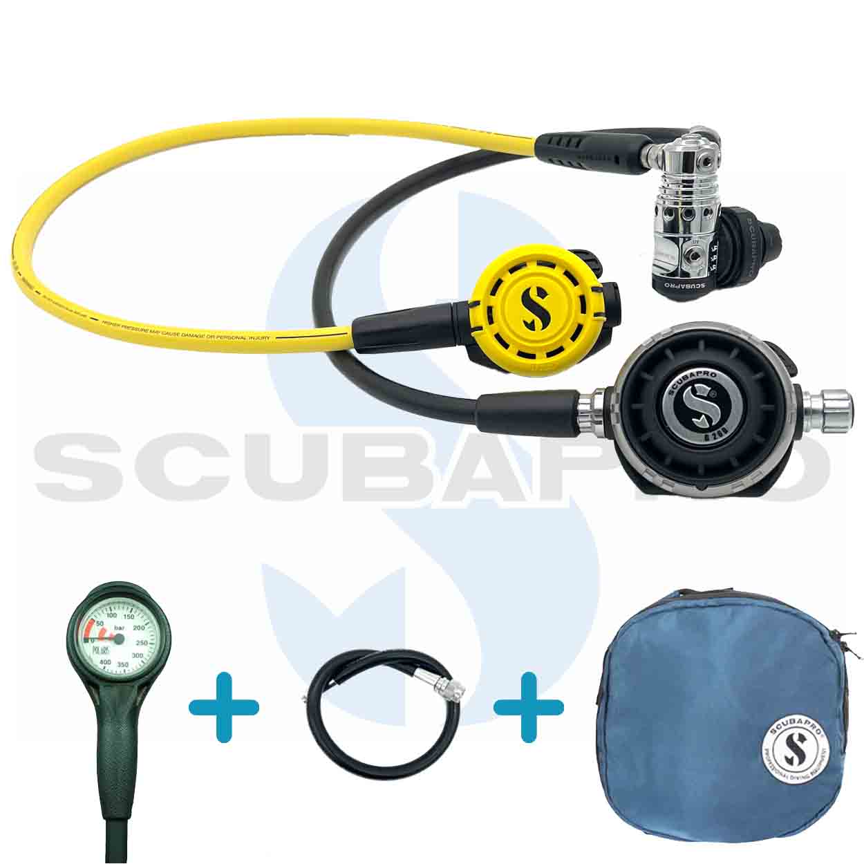Im Lieferumfang enthalten sind nicht nur die MK25 EVO erste Stufe, die G260 zweite Stufe und der R105 Octopus, sondern auch zusätzliches Zubehör für eine vollständige Tauchausrüstung:
